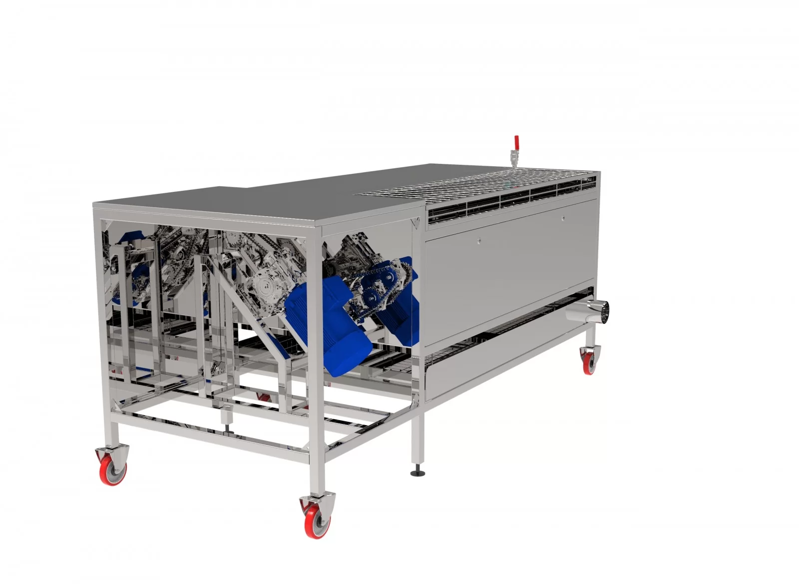 Машина представляет собой ёмкость с абразивными и щёточными валами, которые и осуществляют процесс мойки и чистки. Сверху установлены форсунки для подачи воды, которые смывают очищенную шкуру, землю, ростки, частично ботву и прочее. Такое оборудование значительно ускоряет процесс мойки поступивших с плантаций овощей, повышает производительность, экономит человеческий труд.