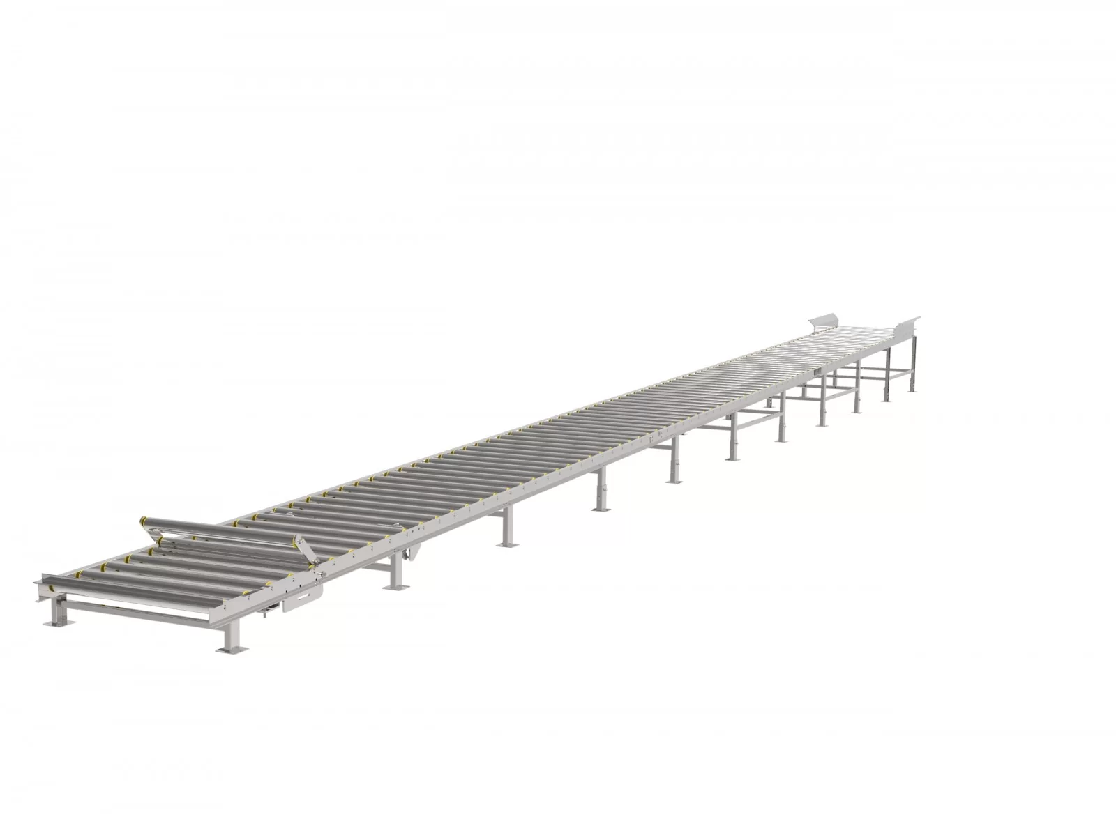 При установке первого поддона в пустой туннель, за счет наклона он скользит вниз и направляется к концу рольганга, где блокируется механическим упором. Первый поддон при движении приводит в действие механический упор, который не позволяет второму поддону приблизиться к первому. Когда первый поддон убирается, упор, удерживающий второй поддон на расстоянии, автоматически опускается, позволяя ему переместиться в положение, ранее занимаемое первым поддоном. Второй поддон, перемещаясь из второго положения в первое, снова приводит в действие упор, который удерживал его на расстоянии. По мере поступления поддонов, они устанавливаются друг за другом до тех пор, пока рольганг не будет полностью заполнен. В общей сложности он может вмещать до 10 поддонов.